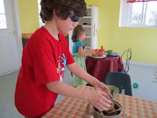 You may wonder about the last picture...Ethan is wearing a wolf mask he got in the gift shop. The second time through the museum he was a wolf stalking prey. Oh, interesting times.